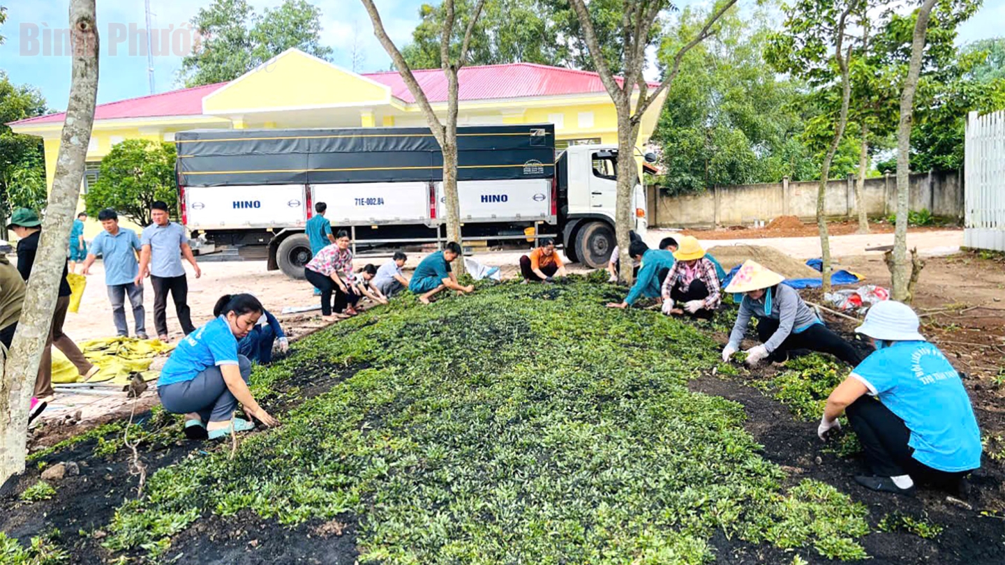 Xây dựng cảnh quan sáng, xanh, sạch tại Ban CHQS thị trấn Tân Phú
