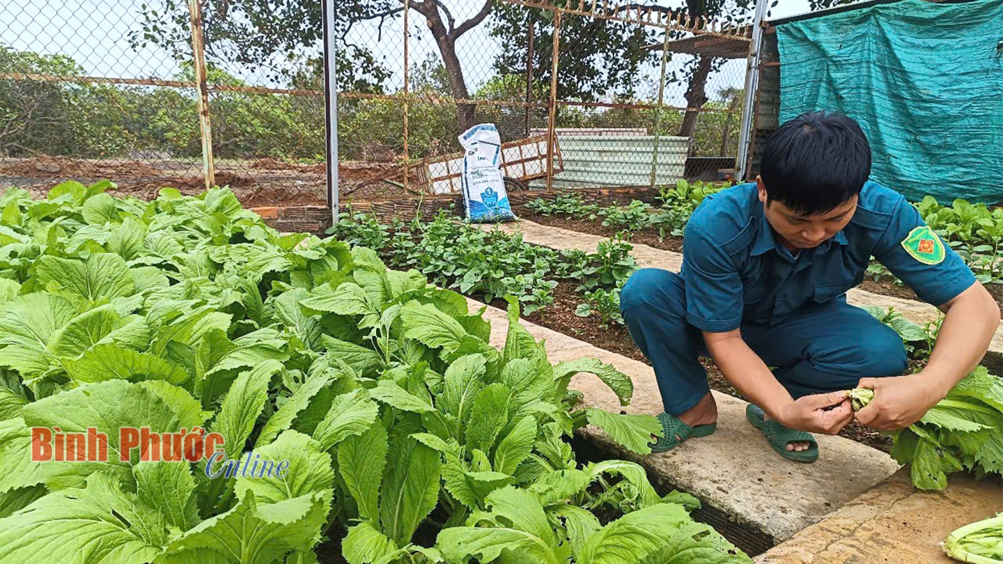 Tham quan mô hình của Ban CHQS thị trấn Tân Phú mới thấy hết những nỗ lực, tâm huyết và cố gắng của đơn vị. Hiện ngoài đàn gà, vịt hàng trăm con, khu vực tăng gia còn có nhiều loại rau như: Cải xanh, rau muống, rau dền, mồng tơi, dấp cá, bầu, bí, mướp đắng, cà tím… Những nông sản này được chăm sóc bằng nguồn nước sạch, bón phân hữu cơ, không dùng thuốc bảo vệ thực vật, góp phần cải thiện bữa ăn hàng ngày.