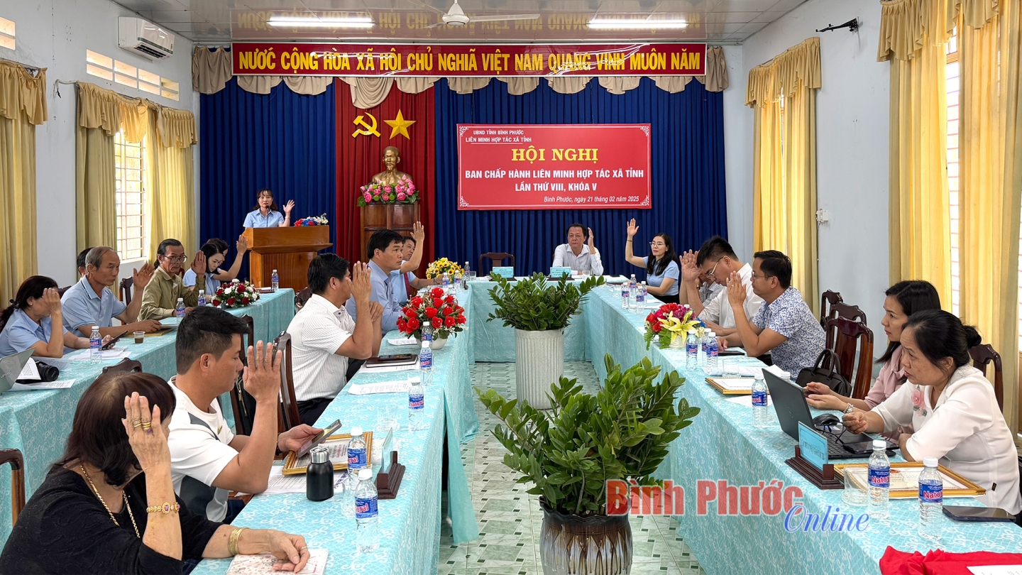 Các đại biểu dự hội nghị đã cùng nhau thảo luận góp ý và biểu quyết thông qua dự thảo quyết định ban hành quy định về thu, sử dụng hội phí thành viên và dự thảo văn kiện, đề án nhân sự Đại hội khóa VI, nhiệm kỳ 2025-2030Liên minh HTX tỉnh khoá VI, nhiệm kỳ 2025-2030.