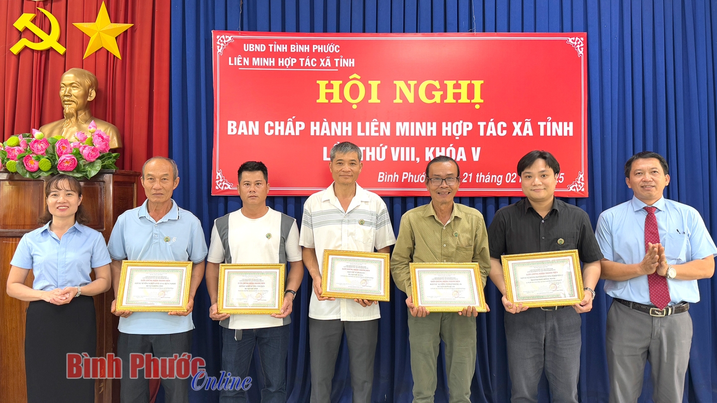 Dịp này, Liên minh HTX tỉnh trao quyết định kết nạp mới 5 thành viên và trao thưởng cho các cá nhân, tập thể đạt giải Cuộc thi tìm hiểu Luật Hợp tác xã năm 2023.