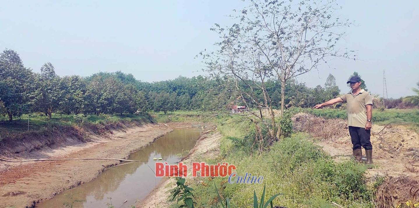 Mặc dù ở gần khu vực lòng hồ Thủy điện Thác Mơ, song vườn sầu riêng của nhiều hộ dân tại thôn 6, xã Bình Minh, huyện Bù Đăng cũng trong tình trạng thiếu nước tưới. Gia đình anh Nguyễn Quốc Việt có 2 ha sầu riêng Ri6. Thời điểm này, lứa trái đã được 70 ngày tuổi, nhu cầu về nước tưới rất cao. Anh Việt cho biết: Từ đầu tháng 3, gia đình đã múc ao tại vị trí trũng nhất. Dù vậy, tới nay mực nước có rất ít. Hiện giếng khoan trong vườn vẫn liên tục bơm tưới hằng ngày. Hy vọng sẽ không bị thiếu nước.