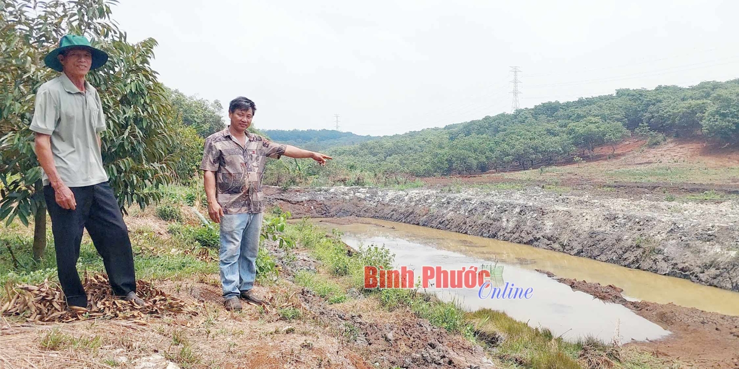 Khó khăn hơn vì không có ao chứa, không có giếng khoan, vườn sầu riêng lại cách xa hồ Đồng Xoài nên gia đình anh Huỳnh Tấn Phước ở cùng ấp Thuận Hòa 2, phải nhờ ao của anh Thuận để bơm tăng bo về vườn nhà mình. Do vậy, ao luôn có 2 máy bơm dầu cỡ lớn, hoạt động liên tục. Anh Phước chia sẻ: “Hiện mực nước tại hồ Đồng Xoài đã xuống, một số cồn, bãi nhô lên. Do vậy, việc lắp đặt hệ thống ống dẫn để bơm vào ao cũng không dễ dàng. Thiếu nước tưới, vườn sầu riêng sẽ bị kiệt sức, chất lượng trái giảm nhiều”.