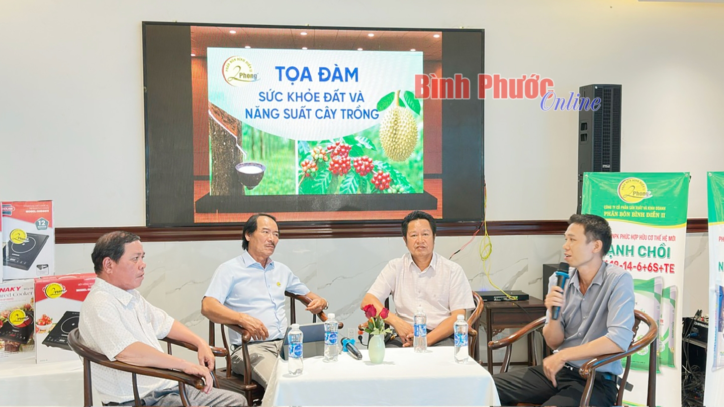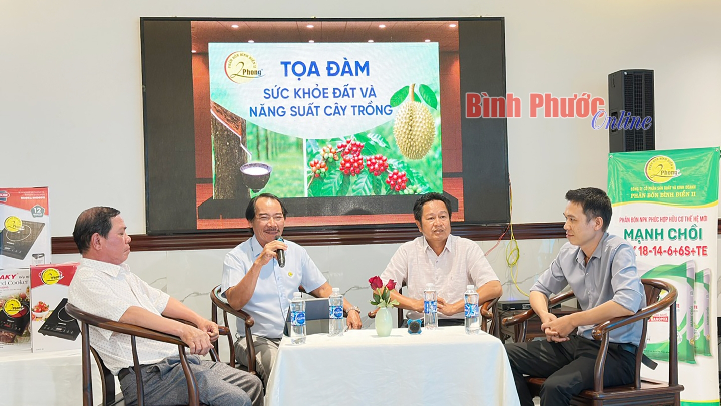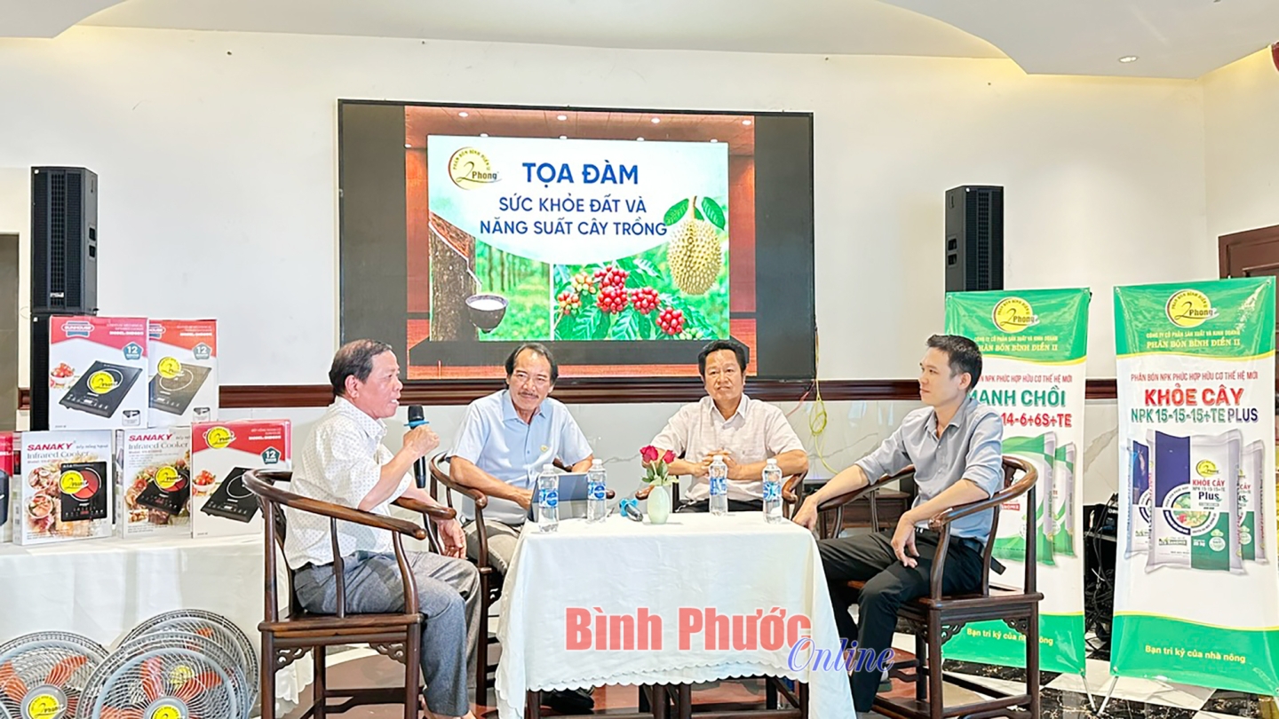 Tham dự tọa đàm cùng chuyên gia với chủ đề: “Sức khỏe đất và năng suất cây trồng”, Tiến sĩ Phạm Công Trí đã chia sẻ những kiến thức bổ ích và xu hướng mới trong lĩnh vực nông nghiệp bền vững; về sức khỏe đất, dinh dưỡng và nâng cao năng suất cây trồng. Đại diện cửa hàng vật tư nông nghiệp đến từ xã Đắk Nhau, huyện Bù Đăng chia sẻ thực tiễn hiệu quả của sản phẩm 2Phong trên đồng ruộng.