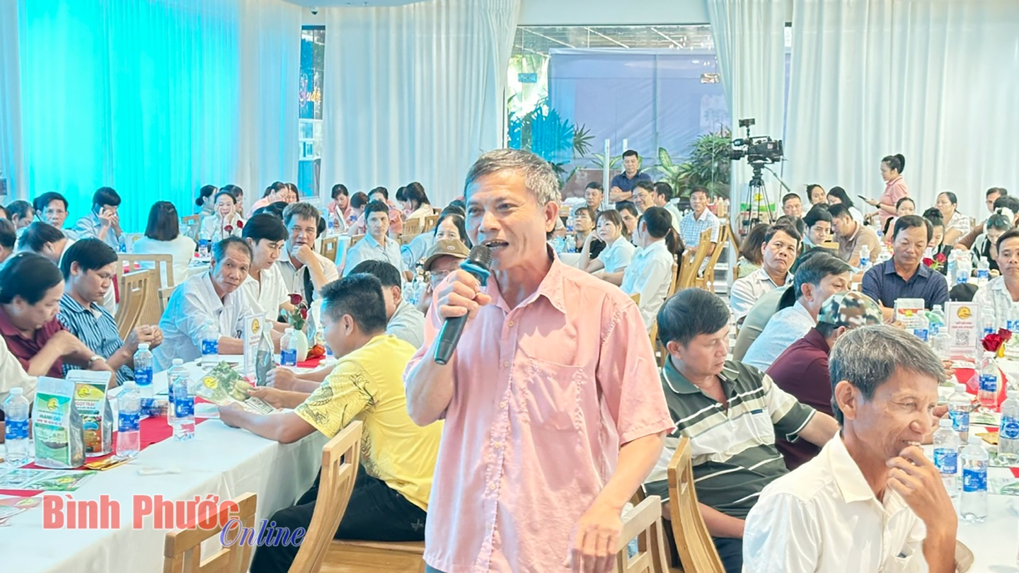 Nhà nông Phạm Thành - nông dân sản xuất giỏi, tiêu biểu của tỉnh Bình Phước đến từ xã Nghĩa Trung, huyện Bù Đăng đã trao đổi với các diễn giả, xoay quanh vấn đề kỹ thuật sử dụng phân bón, giải pháp cải tạo đất, nâng cao năng suất cây trồng cũng như hiệu quả thực tế của sản phẩm phân bón 2Phong trên đồng ruộng.