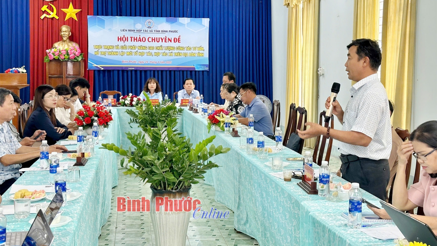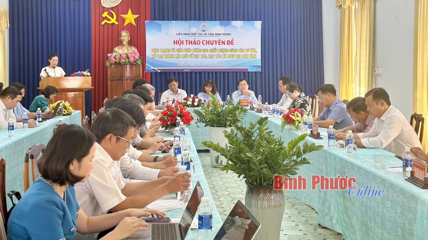 Hội thảo thu hút đông đảo đại biểu trong và ngoài tỉnh là những người am tường, trực tiếp và gián tiếp hoạt động, điều hành các THT, HTX đến tham gia, thảo luận, đóng góp ý kiến. Bà Nguyễn Thanh Phương, Chủ tịch Liên minh HTX tỉnh Bình Phước cho biết về số lượng, toàn tỉnh hiện có 1.390 THT với 12.590 thành viên. Trung bình mỗi năm thành lập mới 10 THT. Số HTX hiện có trong tỉnh là 361, trong đó có 258 HTX đang hoạt động với tổng số thành viên là 13.529 và 9.008 lao động làm việc trong các HTX. Trung bình mỗi năm toàn tỉnh thành lập mới 30 HTX.