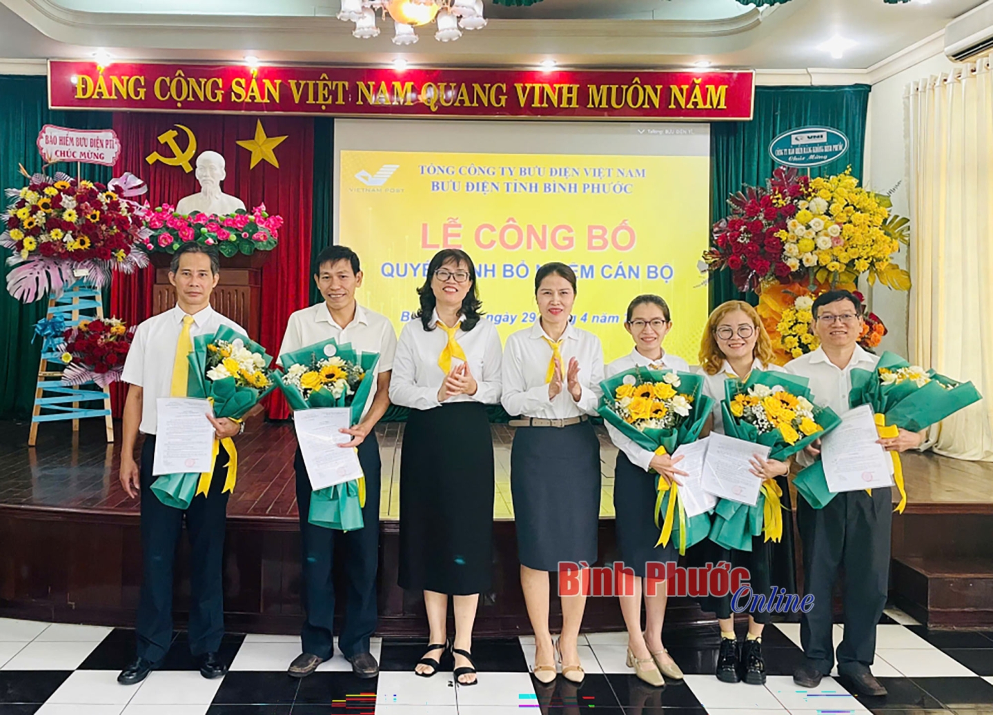 Bà Huỳnh Như Quỳnh, Giám đốc Bưu điện tỉnh Bình Phước trao các quyết định về công tác cán bộ