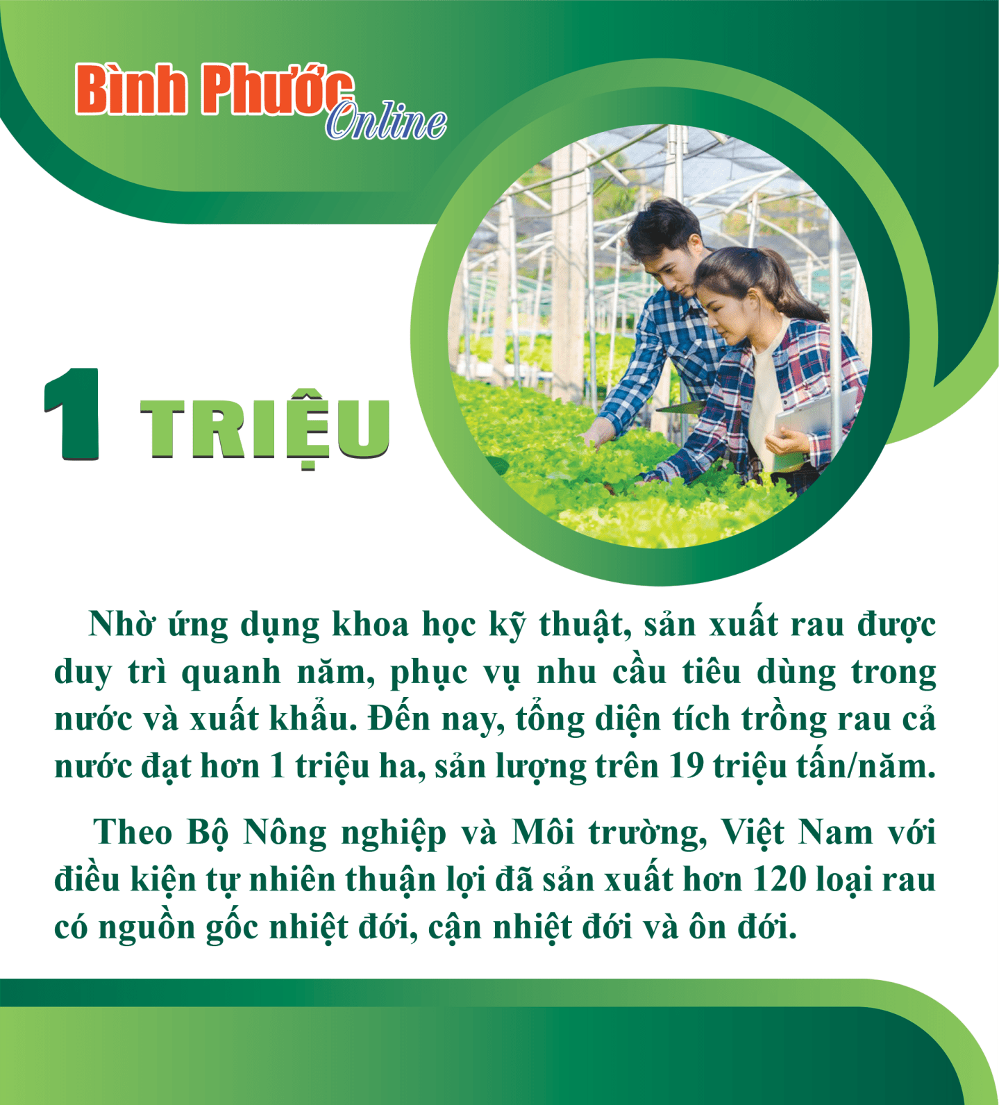 Tổng diện tích trồng rau cả nước đạt hơn 1 triệu ha
