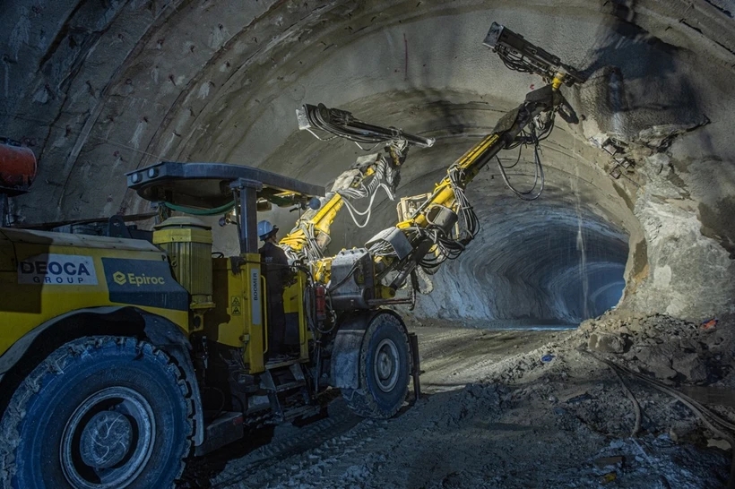 Nhà thầu thi công một hạng mục hầm đường bộ trên tuyến cao tốc Bắc-Nam phía Đông. (Ảnh: PV/Vietnam+)