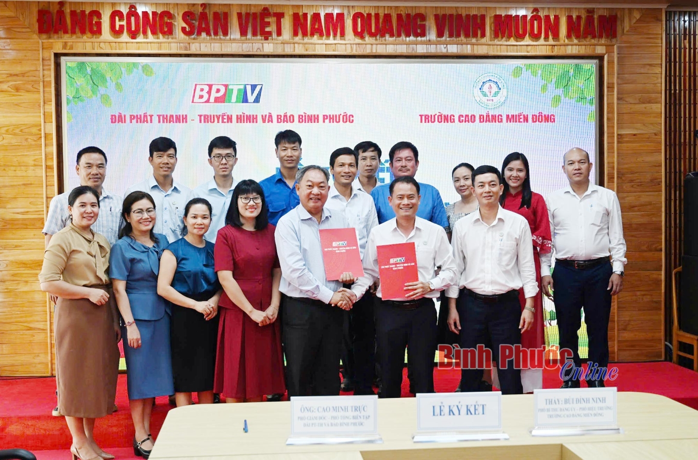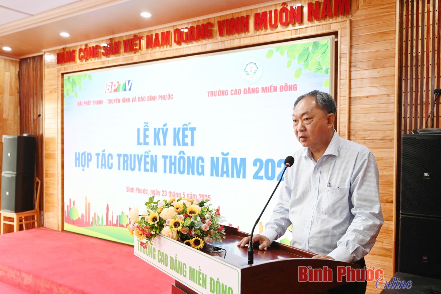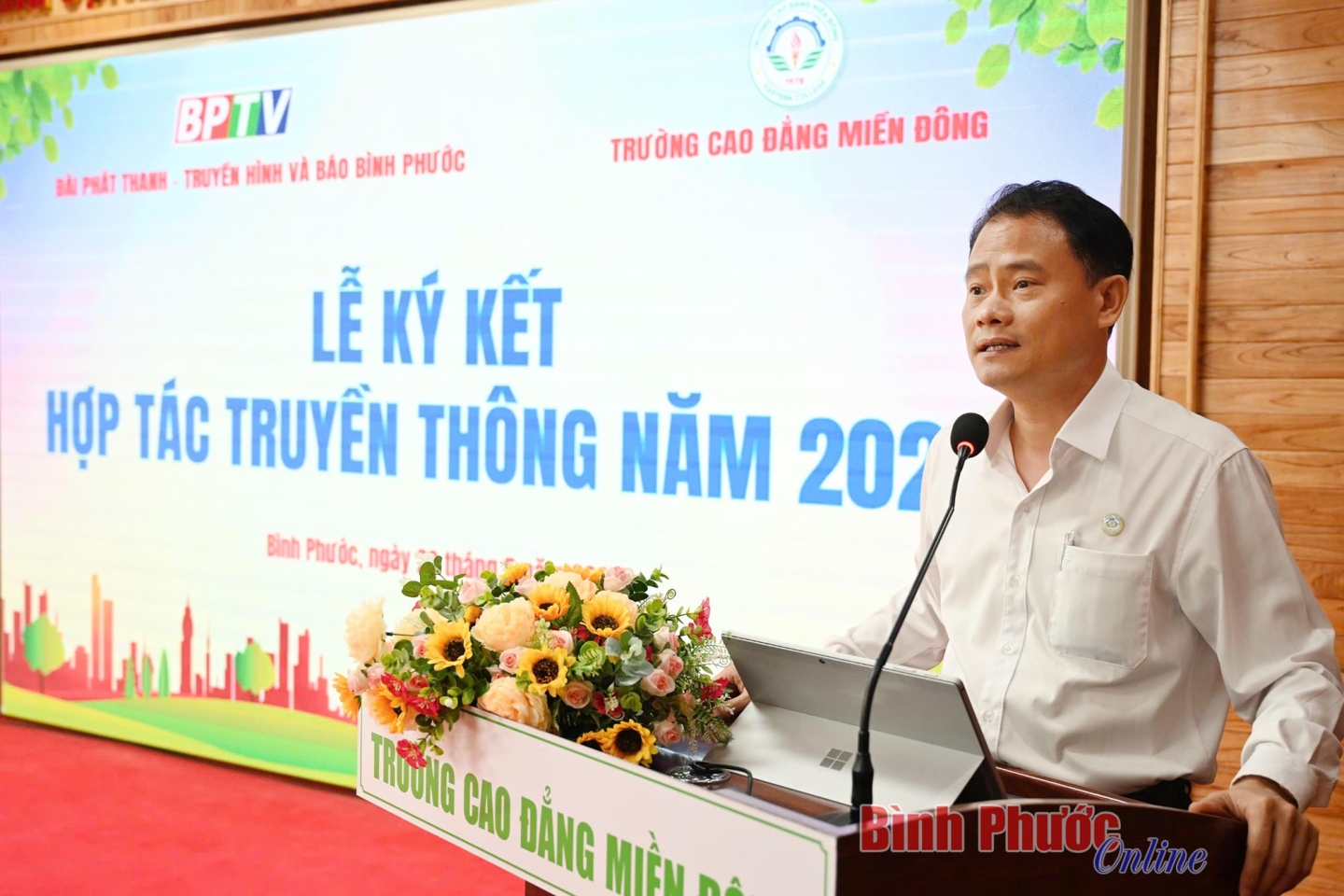Phát biểu tại lễ ký kết, Phó Bí thư Đảng ủy, Phó Hiệu trưởng Bùi Đình Ninh đã thông tin thêm về các ngành nghề đào tạo hệ cao đẳng, trung cấp, sơ cấp, bồi dưỡng ngắn hạn, nhà trường tập trung vào 5 nhóm: Công nghệ kỹ thuật, Công nghệ thông tin, Kinh tế - quản lý - tài chính ngân hàng, Nông nghiệp, Cao su. Đặc biệt đối với nhóm ngành, nghề cao su, Cao đẳng Miền Đông tự hào là trường duy nhất của cả nước đào tạo chuyên sâu về lĩnh vực này. Phó Hiệu trưởng Bùi Đình Ninh nhấn mạnh: Thời gian qua, ấn tượng và đánh giá cao quá trình phát triển cùng những thành quả mà BPTV đạt được, đơn vị mong muốn sẽ hợp tác với BPTV để nâng cao việc tuyên truyền, đẩy mạnh công tác tuyển sinh.