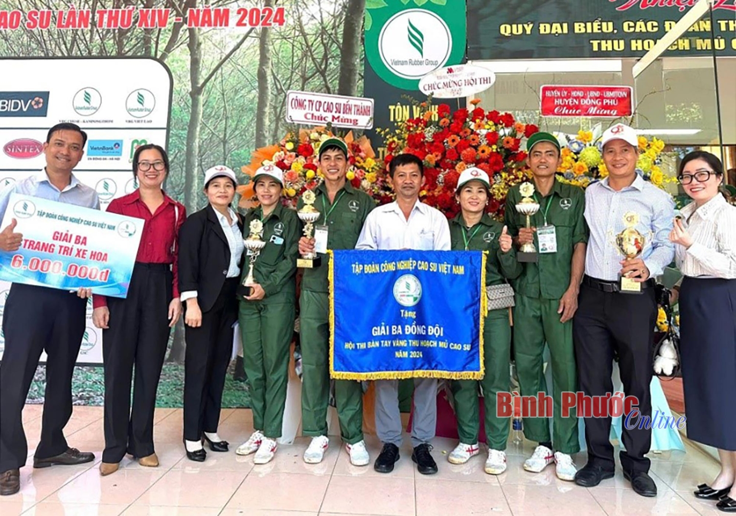 Đoàn thợ giỏi Công ty TNHH MTV cao su Lộc Ninh đoạt giải ba đồng đội với 3/3 thí sinh đạt danh hiệu Bàn tay vàng tại Hội thi Bàn tay vàng cấp ngành năm 2024