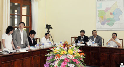 Đại diện tập đoàn Doosan (Hàn Quốc) báo cáo sơ lược với Chủ tịch tỉnh Trương Tấn Thiệu về hiện trạng đầu tư của tập đoàn ở Việt Nam đến nay và trình bày kế hoạch thực hiện dự án tư xây dựng nhà máy nhiệt điện tại Bình Phước.