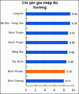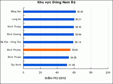 Chỉ số năng lực cạnh tranh cấp tỉnh năm 2012 do Phòng thương mại công nghiệp Việt Nam công bố ngày 14-3, Bình Phước đạt 55,82 điểm, thuộc nhóm điều hành khá, xếp thứ 7 khu vực Đông Nam bộ, xếp thứ 39 trong số 63 tỉnh thành cả nước, tụt 31 bậc so với năm 2011 (65,87 điểm, xếp thứ 8, trong nhóm điều hành tốt).