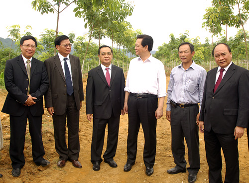 Thủ tướng Nguyễn Tấn Dũng và Thủ tướng Lào Thongsing Thammavong đã đến thăm Công ty Cổ phần Đầu tư phát triển cao su Nghệ An |