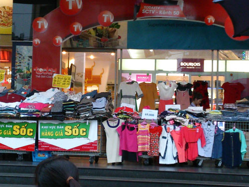 "Hàng thanh lý" cũng là một dạng thu hút khách cuối năm. Cửa hàng thời trang Đ.H. trên đường Nam Kỳ Khởi Nghĩa (Q.1) giảm giá cả hàng hiệu xuất khẩu và cả hàng hiệu nhập từ nước ngoài về, giá từ 80.000 - ba triệu đồng/cái. Áo sơ mi, áo thun, đầm ở đây được gắn đủ các thương hiệu nổi tiếng thế giới như CK, Biegy, Old Navy, Banana… giá chỉ từ 100.000đ/cái. Tuy nhiên, sản phẩm hoặc không có size, hoặc chỉ còn size lớn XL, XXL. Nhiều mẫu đầm được giới thiệu là hàng nhập, mẫu mã đơn điệu, giá đã giảm 30% vẫn còn đến 2,5 triệu đồng/cái. Chúng tôi cũng phát hiện, những mẫu đầm đó nếu bán tại Taka Plaza (Nam Kỳ Khởi Nghĩa, Q.1 - trung tâm chuyên doanh hàng xuất khẩu nhái các thương hiệu) giá chỉ từ 250.000 - 550.000đ/cái.