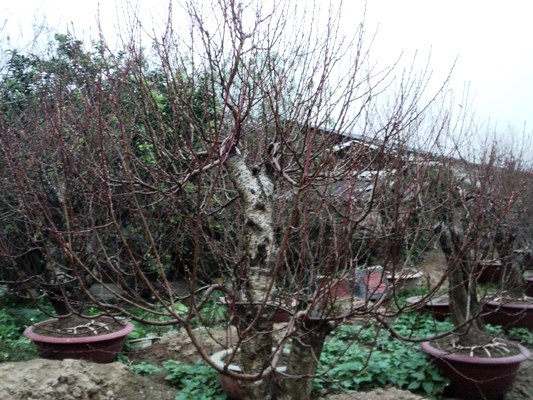 Nhiều cây đào đã tuốt lá và ra nụ bằng hạt gạo