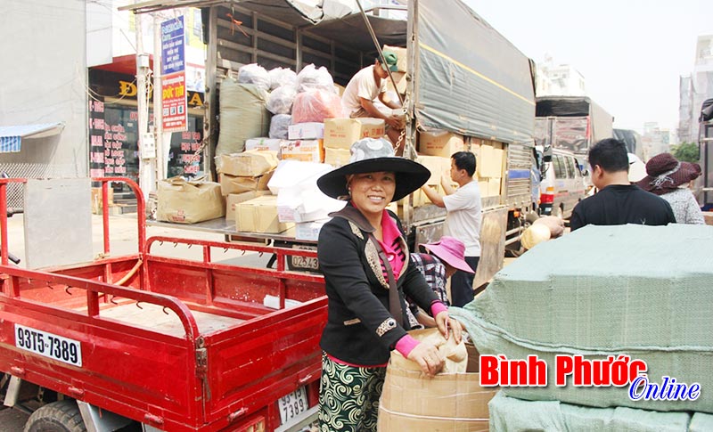 Tiểu thương chợ Đồng Xoài nhận hàng từ nhà phân phối