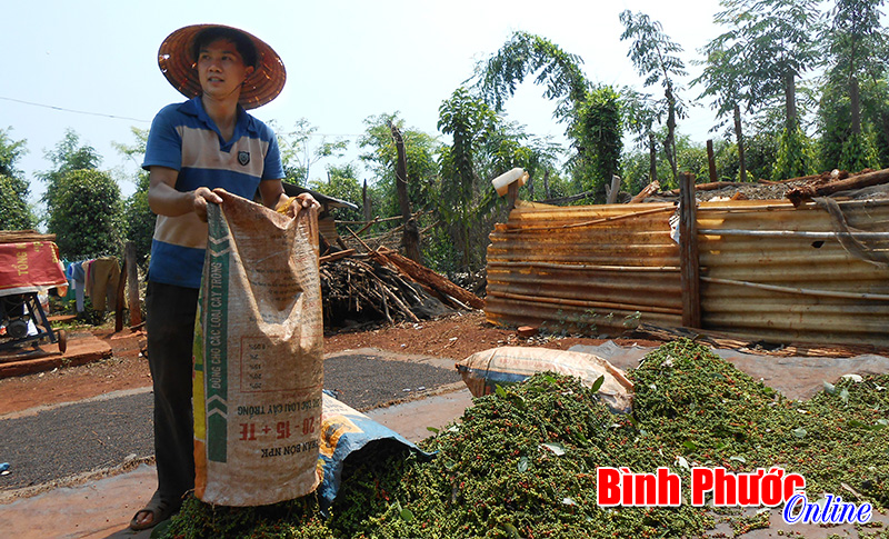 10 giờ sáng, những bao tiêu cũng đã được chủ vườn thu gom về phơi. Anh Gia và anh Nam đều cho biết, tiêu hái được đều phơi 2-2,5 nắng, sàng sảy sạch và cất vào kho đợi 2-3 tháng sau mới xuất kho bán dần khi được giá. Bởi vào mùa nếu ồ ạt bán tiêu sẽ làm thị trường dội và nhà nhập khẩu có cơ hội ép giá nông dân.