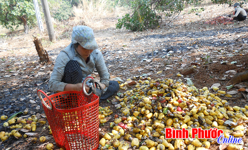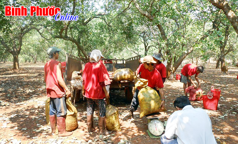 Nhờ chăm sóc tốt, cho điều ra trái sớm nên trang trại của cựu chiến binh Võ Hùng Chiến thôn Khắc Khoan, xã Phú Nghĩa, huyện Bù Gia Mập năng suất bằng mùa điều trước. Ông Chiến trả công cho người nhặt mướn cao hơn so với giá chung