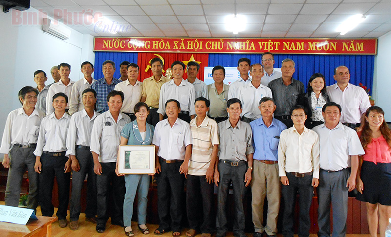 Bình Phước là địa phương đầu tiên được cấp chứng nhận sản xuất tiêu sạch R.A. Trong ảnh là nông dân huyện Lộc Ninh nhận chứng nhận R.A