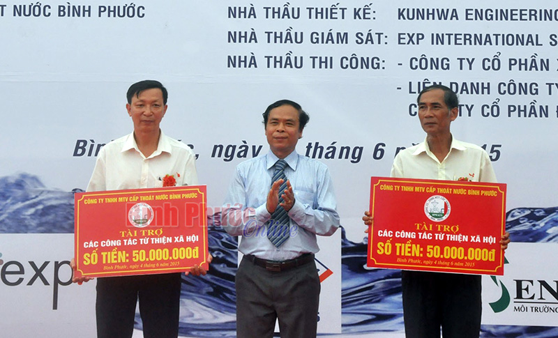 Nhân dịp này, UBND tỉnh đã tặng bằng khen cho Công ty cổ phần xây dựng số 5 là đơn vị thi công chính, vì thi công vượt tiến độ. Công ty TNHH MTV cấp thoát nước Bình Phước trao 100 triệu đồng tài trợ từ thiện xã hội đến Ủy ban MTTQ Việt Nam tỉnh và thị xã Đồng Xoài.