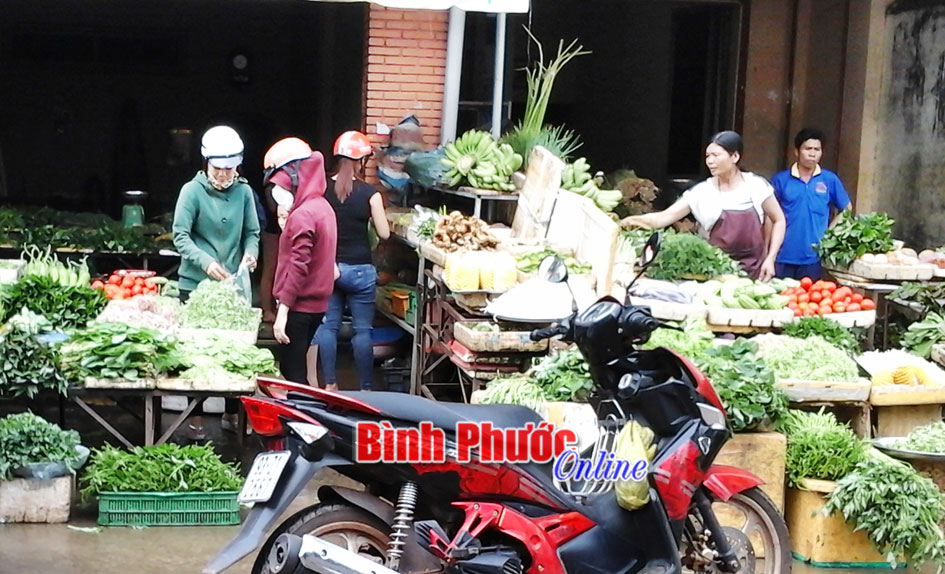 Ngành chức năng rất khó kiểm tra vệ sinh an toàn thực phẩm các ki-ốt bán rau, củ, quả, trái cây. Trong ảnh: Ki-ốt bán rau tại chợ Đồng Xoài