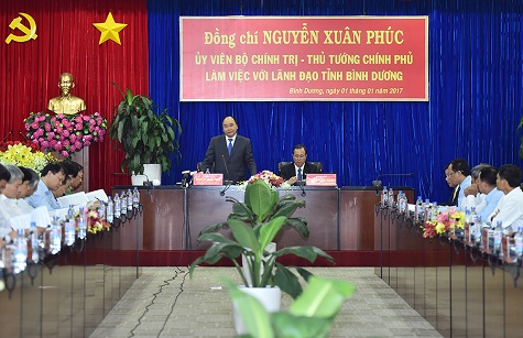 Hôm nay, 1/1/2017, Thủ tướng Nguyễn Xuân Phúc và đoàn công tác Chính phủ có cuộc làm việc với lãnh đạo chủ chốt tỉnh Bình Dương.