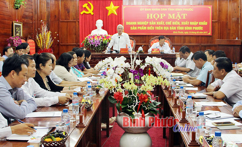 Theo báo nhanh tại buổi họp mặt, toàn tỉnh hiện có 34 doanh nghiệp chế biến điều tham gia xuất khẩu trực tiếp. Năm 2016, kim ngạch xuất khẩu hạt điều nhân của tỉnh đạt 504,1 triệu USD, sản lượng 58.873 tấn, tăng 53,8% về lượng và 71,9% về giá trị so với năm 2015. Trung Quốc là thị trường xuất khẩu hạt điều lớn nhất với thị phần chiếm 32%, kế đến là Mỹ chiếm 15%, còn lại các nước trong EU, Canada... Giá xuất khẩu bình quân đối với hạt điều loại W240 từ 11,5-11,7 USD/kg, loại W320 từ 10-10,2 USD/kg, thấp nhất là loại WS/WB từ 6,8-9,9 USD/kg.
