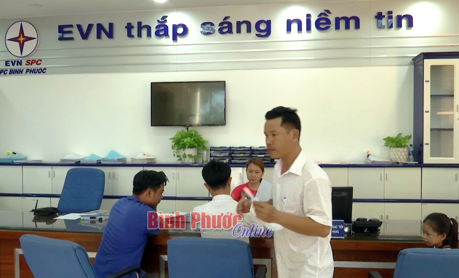 Khách hàng đến giao dịch tại Phòng giao dịch Điện lực TP. Đồng Xoài chấp hành tốt việc không hút thuốc lá nơi công cộng