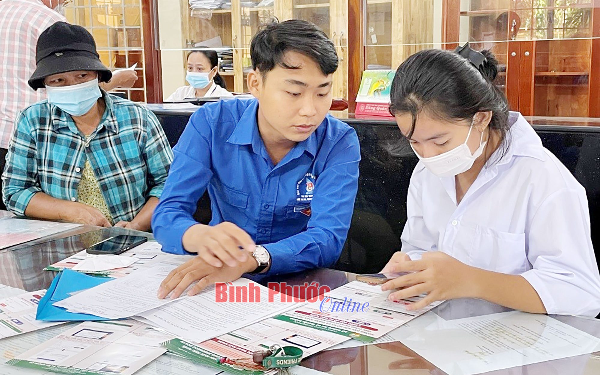 Công chức xã Lộc Khánh, huyện Lộc Ninh hướng dẫn người dân đăng ký và sử dụng dịch vụ công trực tuyến