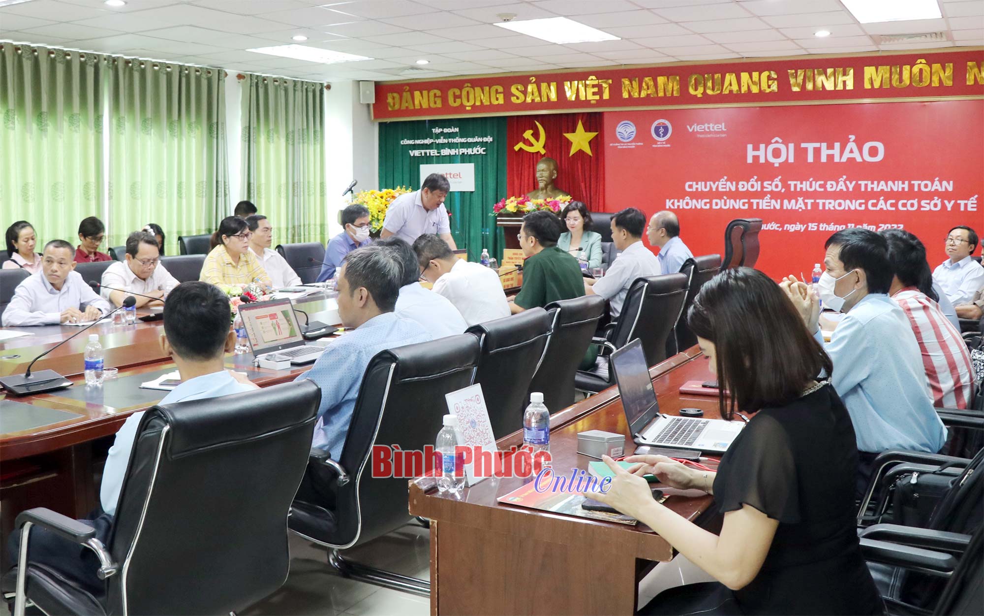 Tại hội thảo, sau khi nghe Viettel Bình Phước giới thiệu về hệ sinh thái chuyển đổi số trong ngành y tế và giải pháp thúc đẩy thanh toán không dùng tiền mặt, các đại biểu đã thảo luận, làm rõ nguyên nhân tỷ lệ thanh toán không dùng tiền mặt đạt thấp. Một trong những nguyên nhân chính là do thói quen dùng tiền mặt của người dân; khi thực hiện thanh toán phải có điện thoại thông minh và tài khoản thẻ ngân hàng, trong khi nhiều người chưa có; việc kết nối liên thông thanh toán giữa các đơn vị cung cấp dịch vụ chưa đồng bộ. Mặt khác, công tác tuyên truyền, hướng dẫn còn hạn chế; chưa tập trung chỉ đạo quyết liệt thực hiện… Các đại biểu cũng trao đổi, kiến nghị những giải pháp nhằm thúc đẩy việc thanh toán không dùng tiền mặt tại các cơ sở y tế trong thời gian tới.