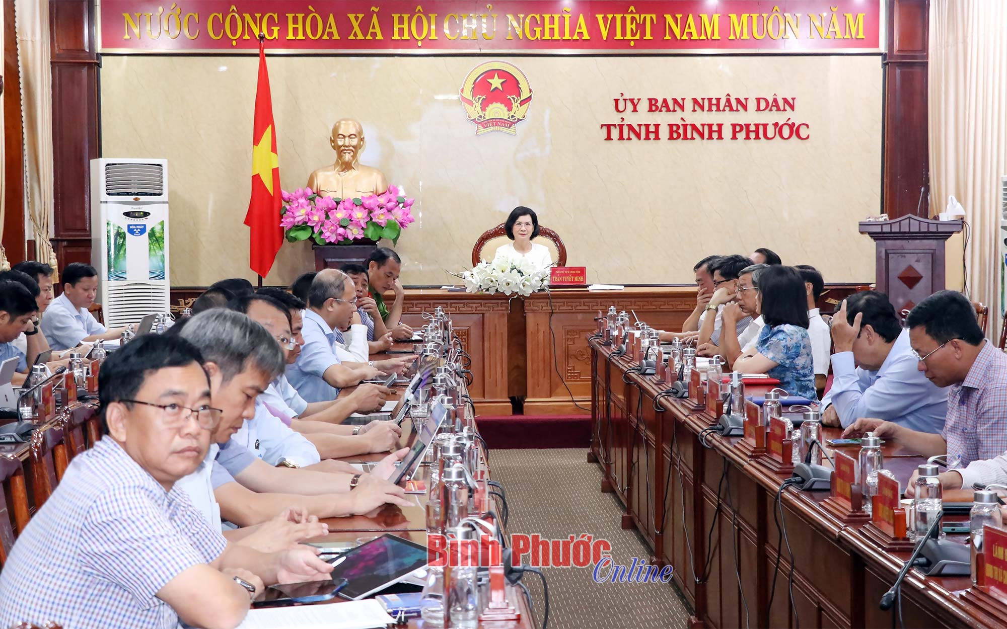 Ủy viên Ban Thường vụ Tỉnh ủy, Phó Chủ tịch UBND tỉnh Bình Phước Trần Tuyết Minh phát biểu tại buổi làm việc với các sở, ngành, địa phương trong tỉnh