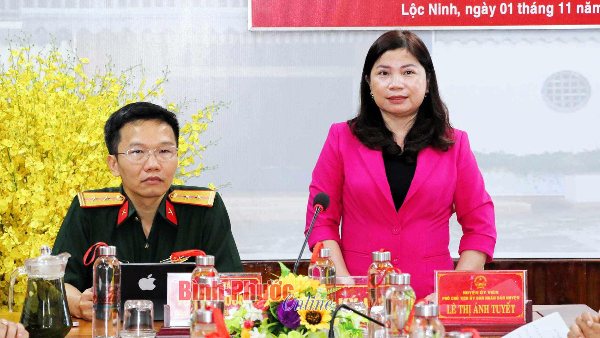Phó Chủ tịch UBND huyện Lộc Ninh Lê Thị Ánh Tuyết phát biểu tại lễ ký kết