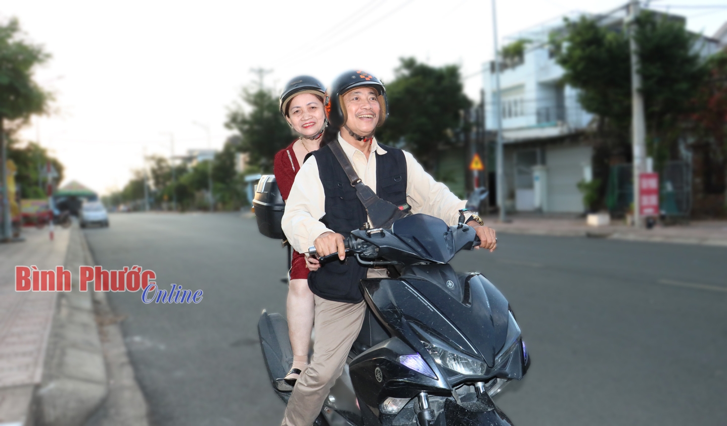 Dù đã lớn tuổi nhưng đam mê sáng tác luôn là động lực để nhạc sĩ Trần Cao Vân sẵn sàng rong ruổi trên các thôn, ấp để tìm cảm hứng sáng tác về Bình Phước. Trong ảnh: Nhạc sĩ Trần Cao Vân và vợ trong chuyến về Bình Phước để sáng tác