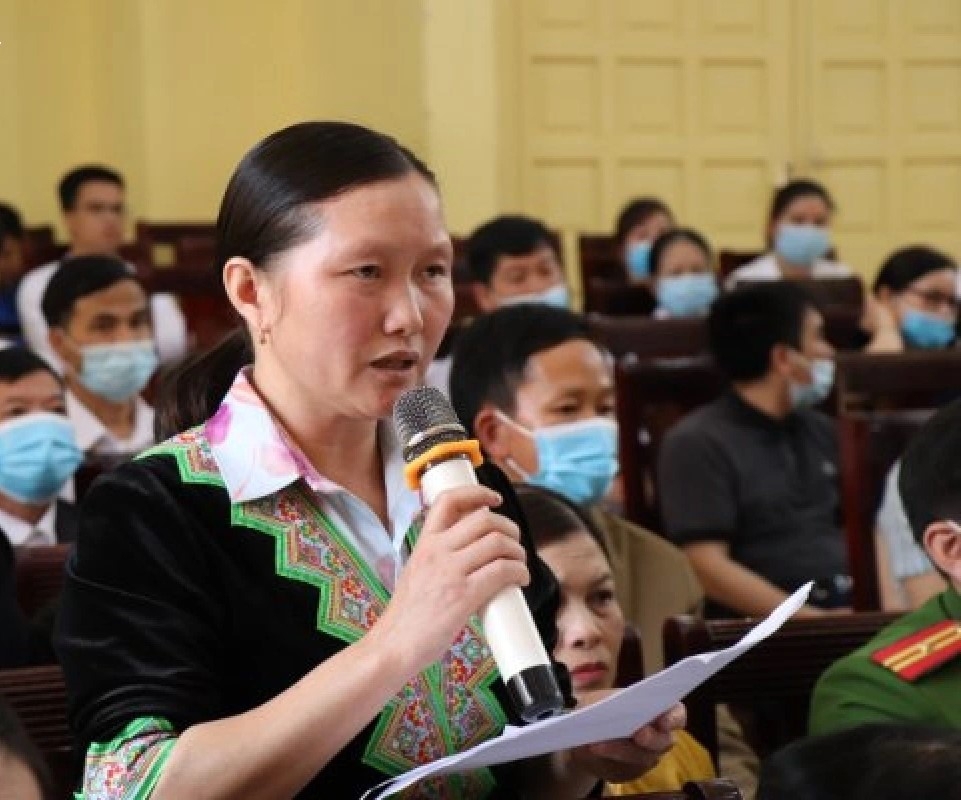Cử tri xã Suối Bu (huyện Văn Chấn, Yên Bái) nêu kiến nghị tại một buổi tiếp xúc cử tri của Đoàn Đại biểu Quốc hội tỉnh Yên Bái - ẢNH: TTXVN