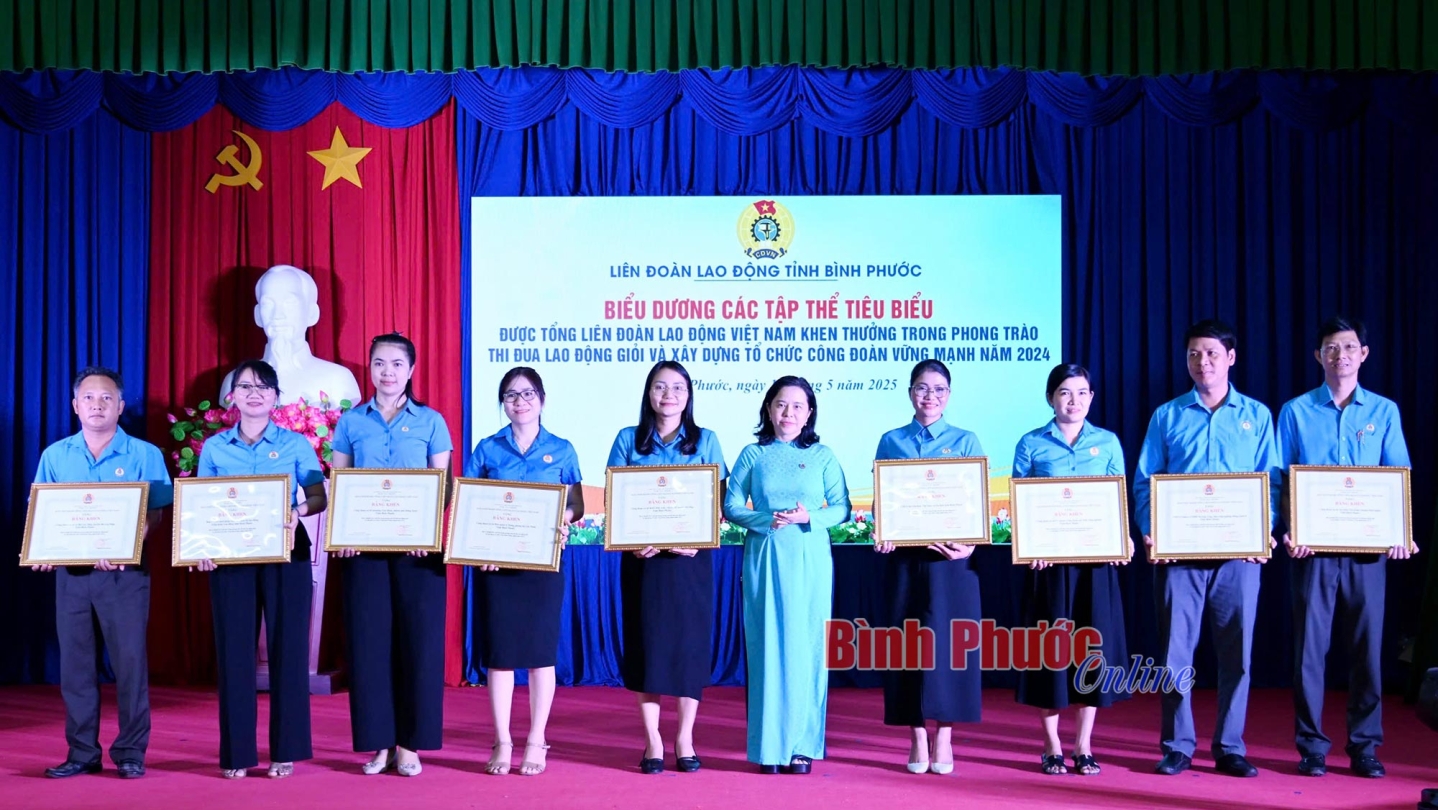 Trong Tháng công nhân 2025, Liên đoàn Lao động tỉnh tổ chức tuyên dương những điển hình tiêu biểu trong các phong trào thi đua - Ảnh: Quốc Việt