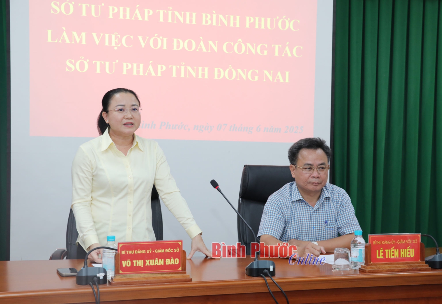 Bà Võ Thị Xuân Đào, Giám đốc Sở Tư pháp Đồng Nai phát biểu tại buổi làm việc