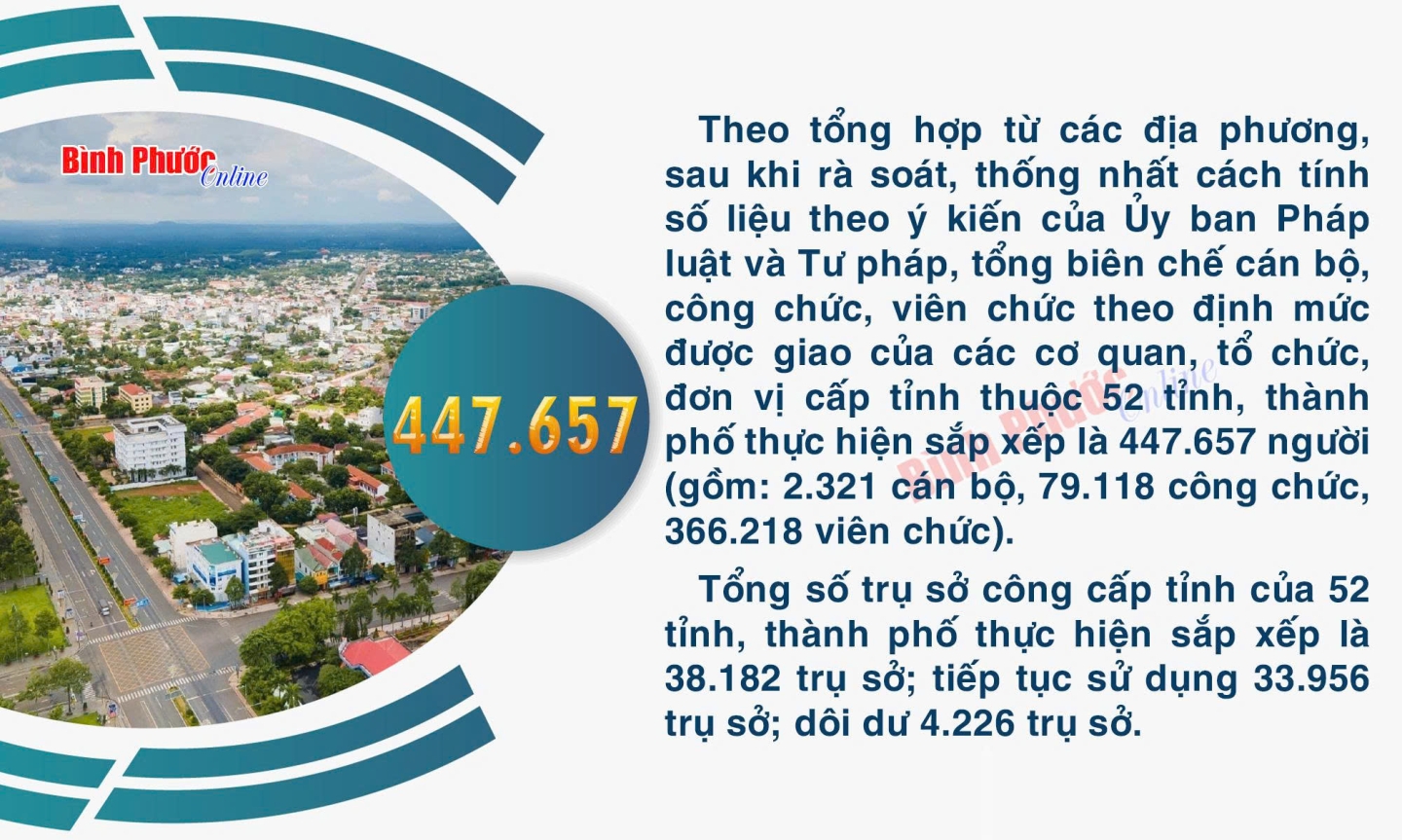 Sau khi sắp xếp, tổng biên chế cán bộ, công chức, viên chức còn 447.657 người