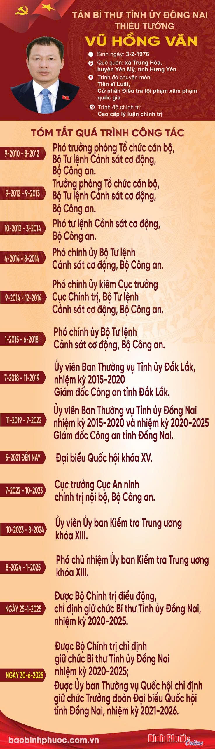 Dưới đây là infographic chân dung đồng chí Vũ Hồng Văn, Bí thư Tỉnh ủy Đồng Nai, sau sáp nhập tỉnh.