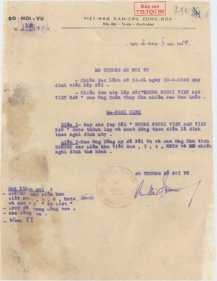Nghị định số 232/NV ngày 2-6-1950 cho phép Hội Những người viết báo Việt Nam thành lập và hoạt động - Nguồn: Trung tâm Lưu trữ Quốc gia III