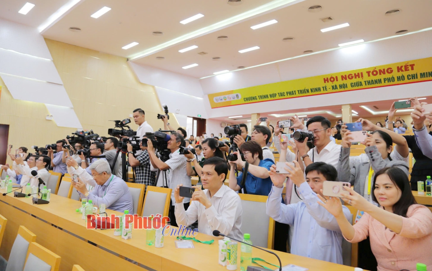 Các nhà báo tác nghiệp tại hội nghị tổng kết Chương trình hợp tác phát triển kinh tế - xã hội giữa TP. Hồ Chí Minh với các tỉnh vùng Đông Nam Bộ
