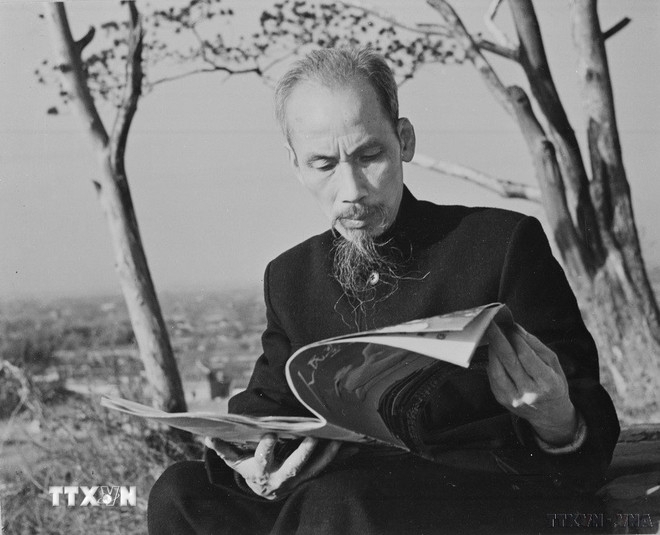 Sinh thời, Chủ tịch Hồ Chí Minh thường xuyên dành thời gian đọc, nhận xét và trực tiếp duyệt tin, bài của TTXVN. (Ảnh: TTXVN)