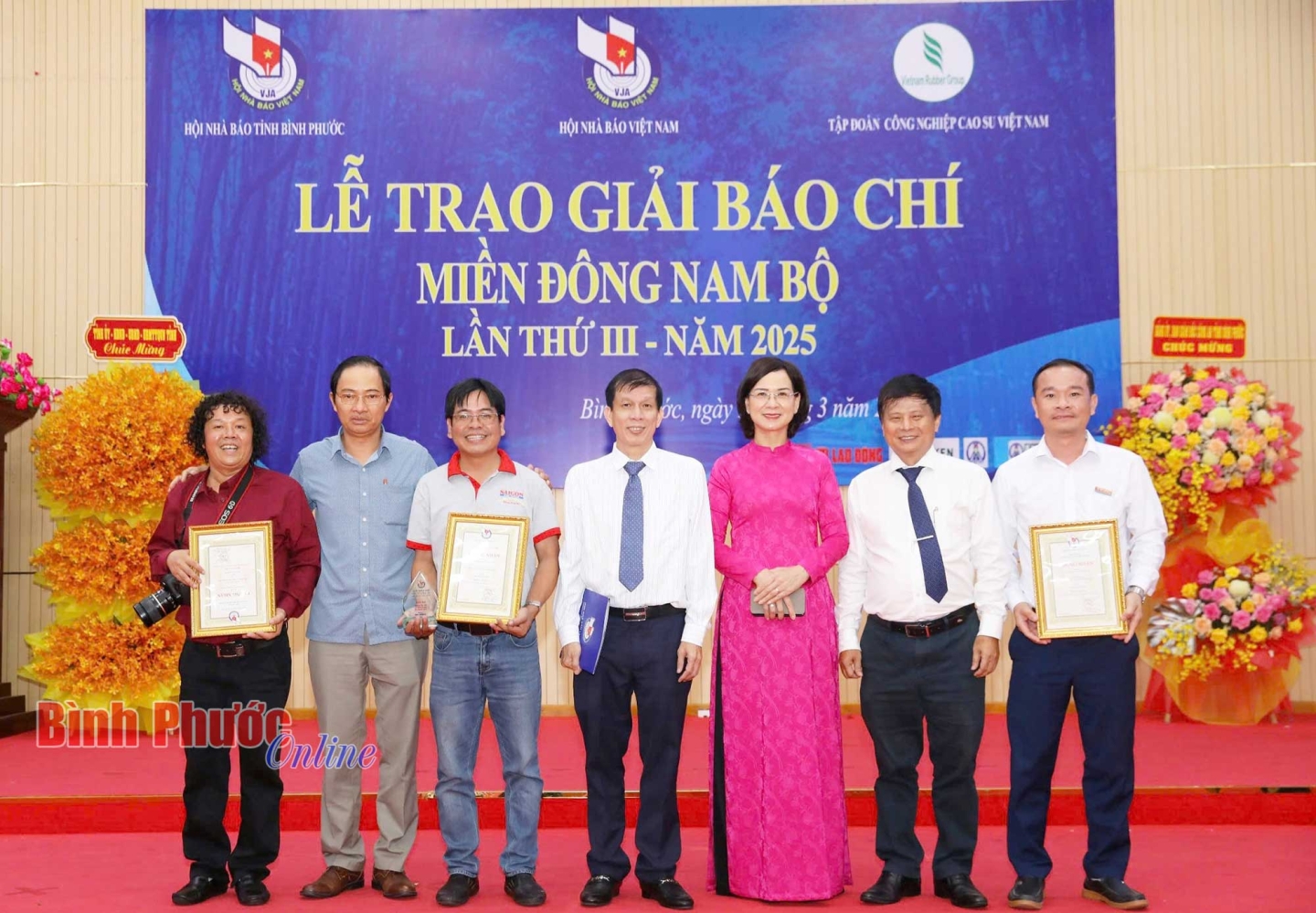 Tác giả (thứ 5 từ phải sang) tại Lễ trao Giải Báo chí miền Đông Nam Bộ lần thứ III tại TP. Đồng Xoài do Hội Nhà báo Việt Nam phối hợp với Hội Nhà báo tỉnh Bình Phước, ngày 28-3