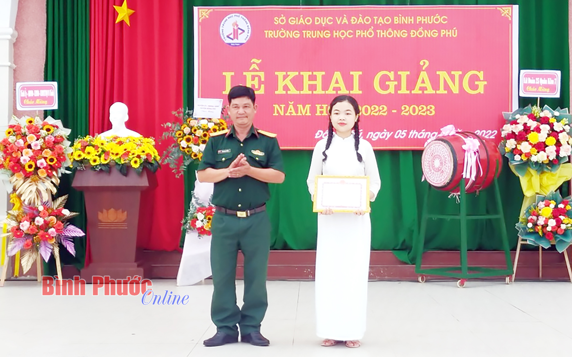 Em Nguyễn Thị Thu Thủy nhận giấy khen đoạt giải ba cuộc thi Đại sứ Văn hóa đọc tỉnh Bình Phước lần thứ IV năm 2022 tại lễ khai giảng năm học 2022-2023
