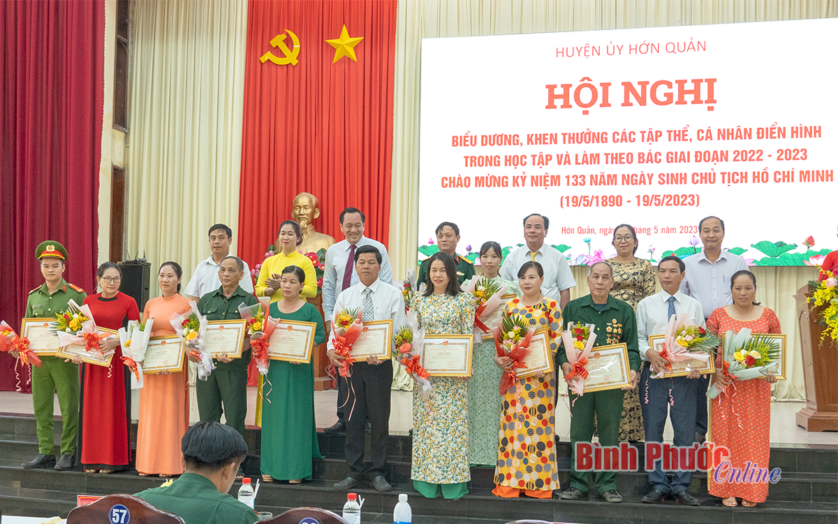 Dịp này, Huyện ủy Hớn Quản đã trao tặng giấy khen cho 5 tập thể, 10 cá nhân tiêu biểu trong học tập và làm theo tư tưởng, đạo đức, phong cách Hồ Chí Minh, giai đoạn 2022-2023.