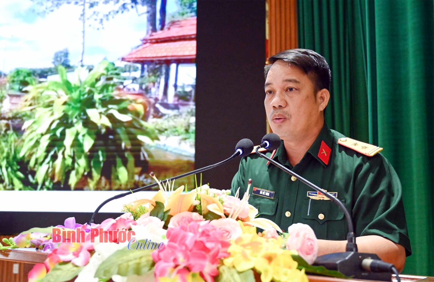 Đại tá Trần Văn Long, Phó Bí thư Thường trực Đảng ủy, Chính ủy Bộ CHQS tỉnh điều hành phần thảo luận