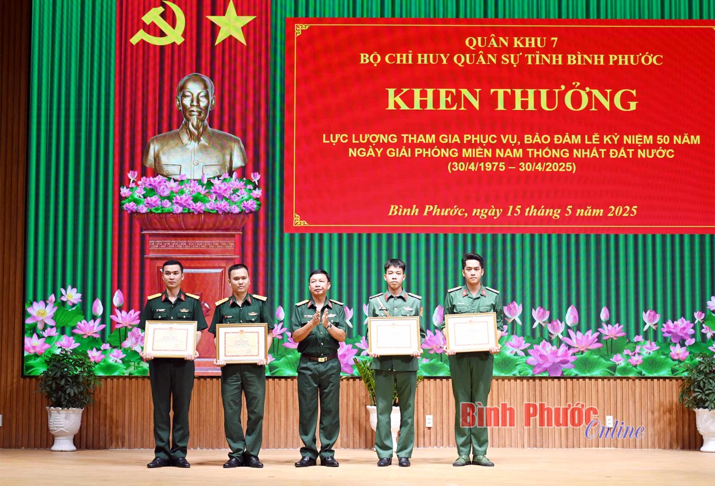 Dịp này, 10 cá nhân có thành tích xuất sắc trong tham gia phục vụ lễ kỷ niệm 50 năm Ngày giải phóng miền Nam, thống nhất đất nước; 5 tập thể, 10 cá nhân có thành tích xuất sắc trong đợt thi đua cao điểm chào mừng 50 năm Ngày giải phóng miền Nam, thống nhất đất nước và 135 năm Ngày sinh Chủ tịch Hồ Chí Minh; 5 tập thể, 10 cá nhân có thành tích xuất sắc trong 10 năm thực hiện Chỉ thị 05 đã được tuyên dương, khen thưởng.