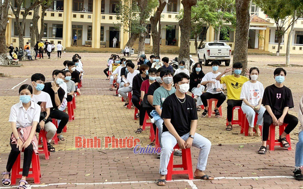 Tại các điểm lấy mẫu, các nhân viên hướng dẫn thí sinh tham gia xét nghiệm Covid-19 vào khu vực đăng ký thông tin, sau đó ngồi chờ đến lượt lấy mẫu. Thành phố Đồng Xoài là khu vực có lượng mẫu đông nhất với 2.187 mẫu bệnh phẩm tương ứng với số học sinh đăng ký tham dự kỳ thi