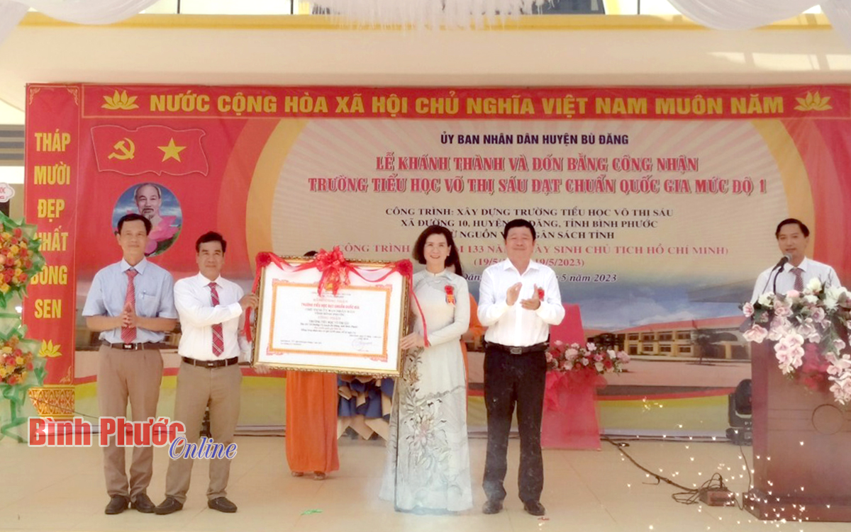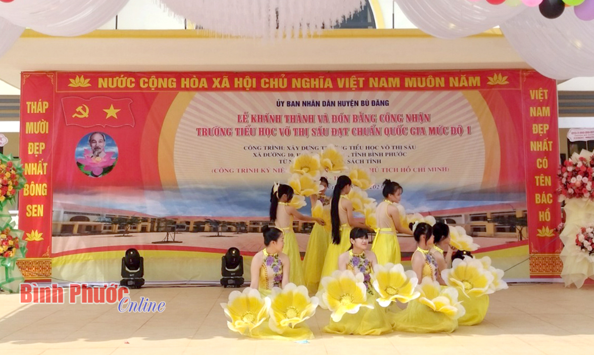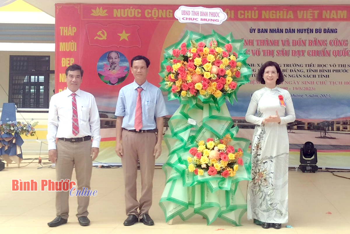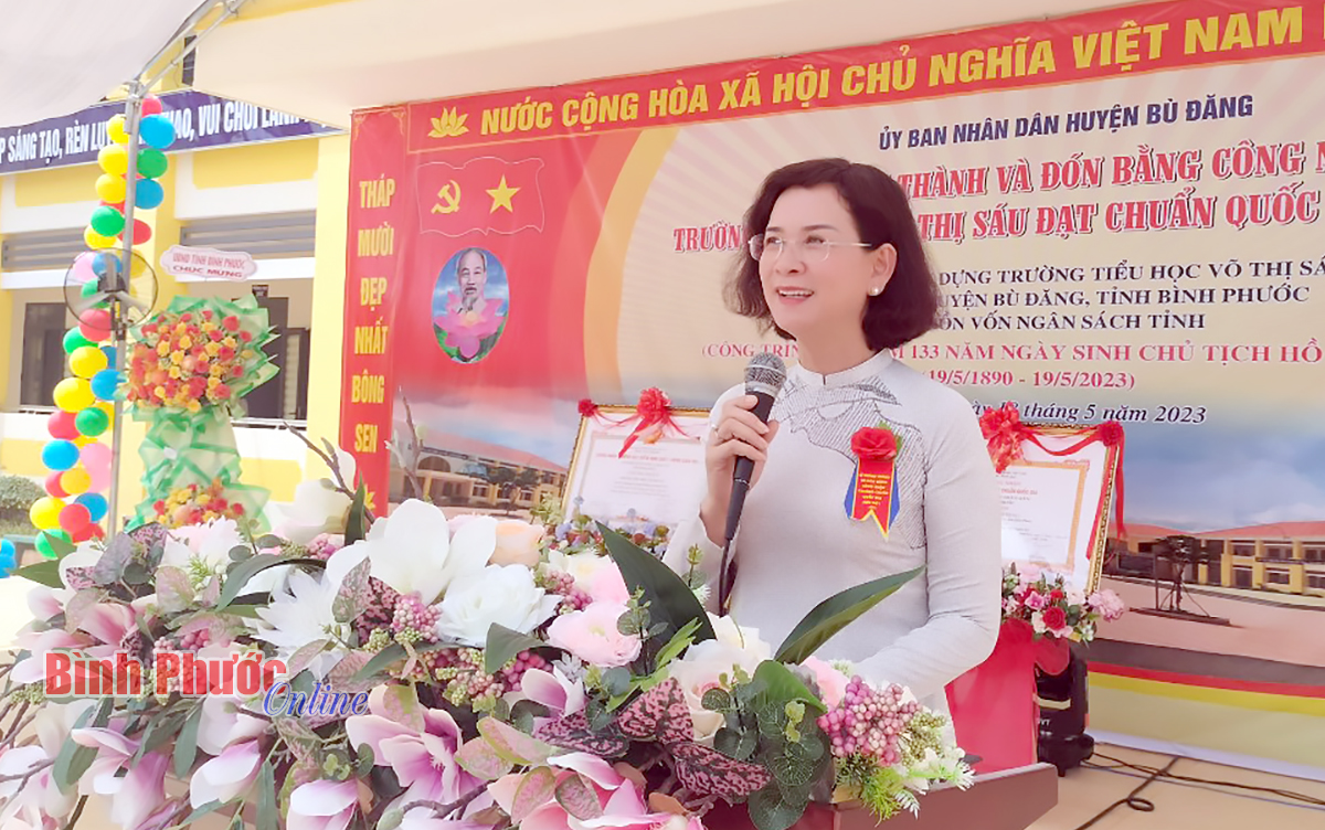 Phát biểu tại lễ khánh thành và đón bằng công nhận Trường tiểu học Võ Thị Sáu đạt chuẩn quốc gia mức độ 1, Ủy viên Ban Thường vụ Tỉnh ủy, Phó Chủ tịch UBND tỉnh Trần Tuyết Minh chúc mừng thầy và trò nhà trường. Đồng thời đề nghị huyện Bù Đăng tiếp tục quan tâm bố trí nguồn lực địa phương và vận động xã hội hóa, đầu tư nhiều hơn cho khuôn viên trường cũng như các trang thiết bị mà trường đang còn thiếu. Trong điều kiện cơ sở vật chất đã được tăng cường, các thầy cô giáo của trường tiếp tục nỗ lực nâng cao chất lượng giáo dục trên cơ sở phát huy và khai thác thật tốt, hiệu quả công trình đã được đầu tư xây dựng để ngày càng có nhiều thành tích trong dạy và học.
