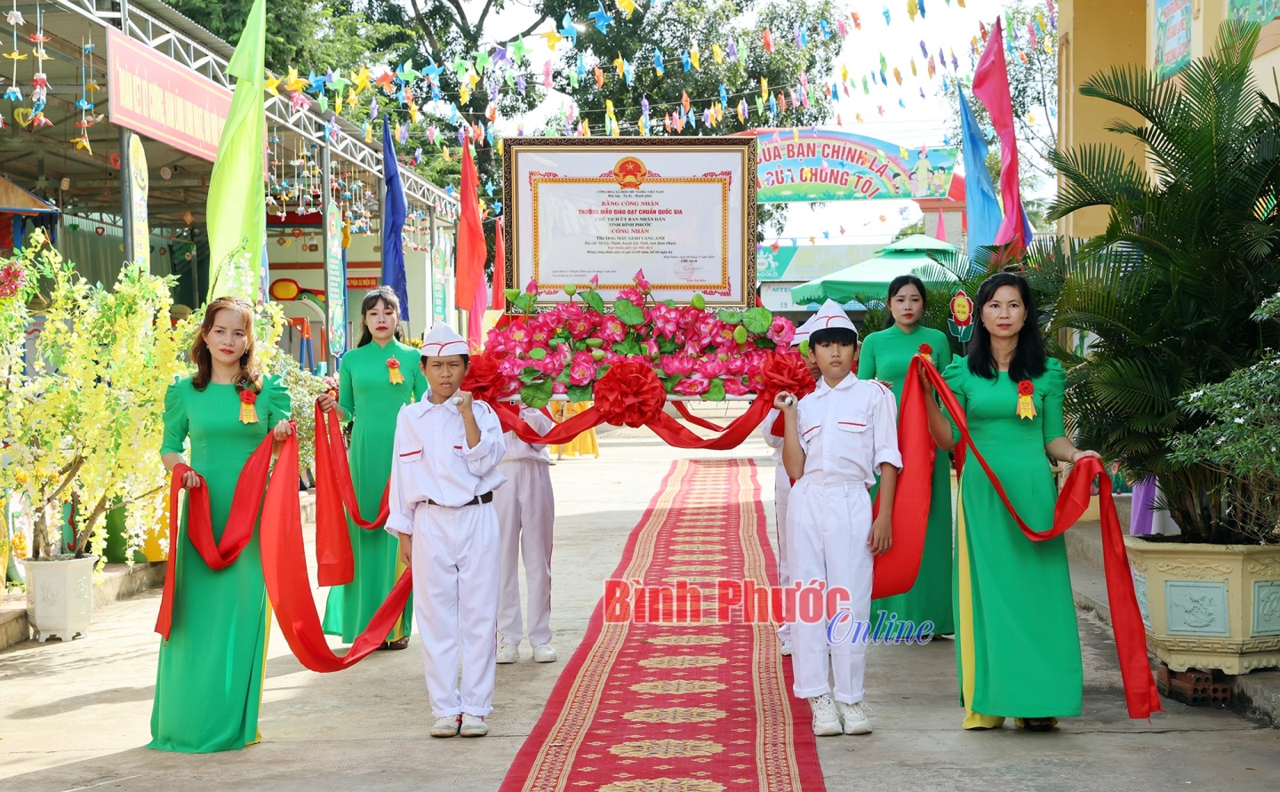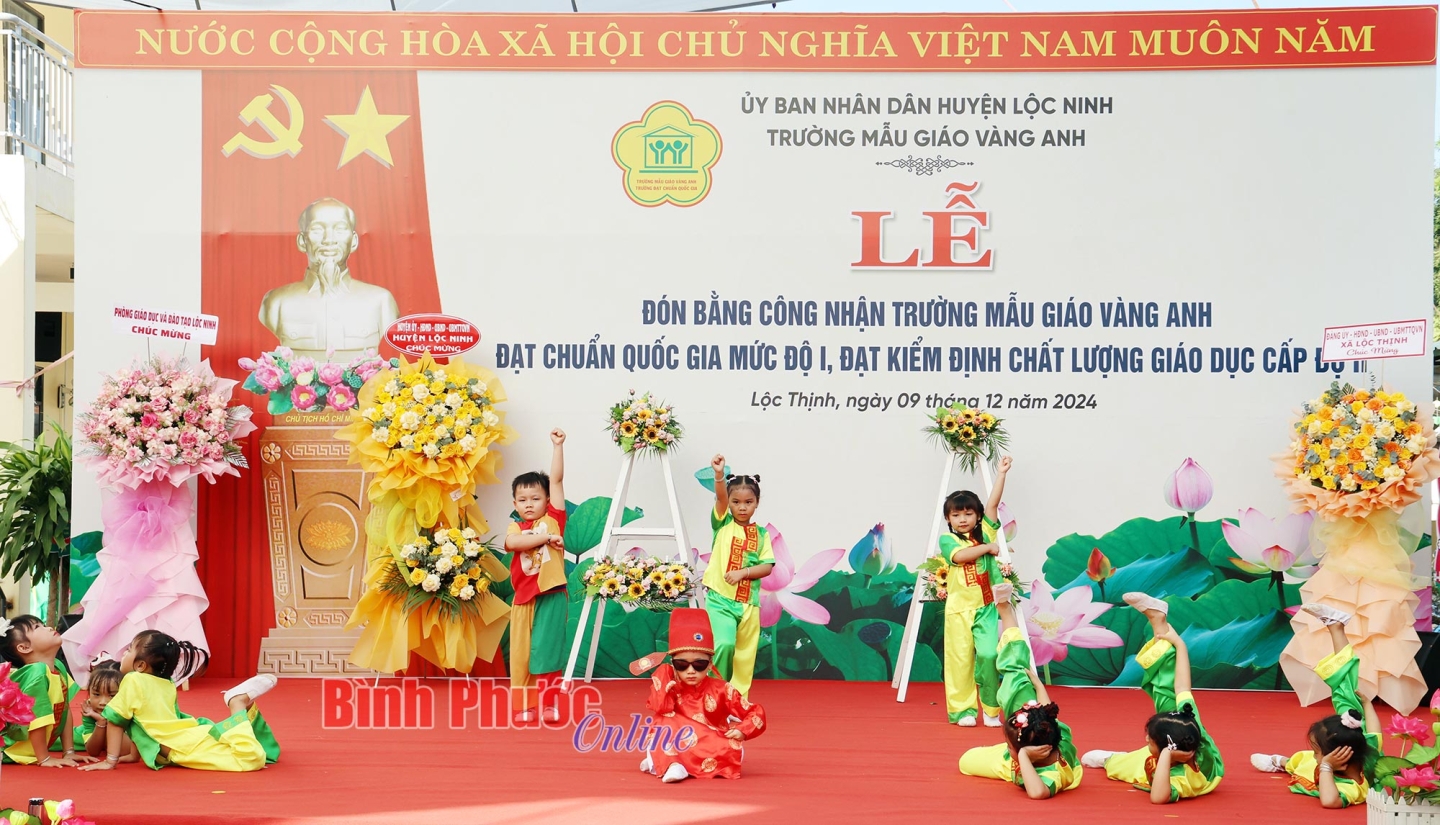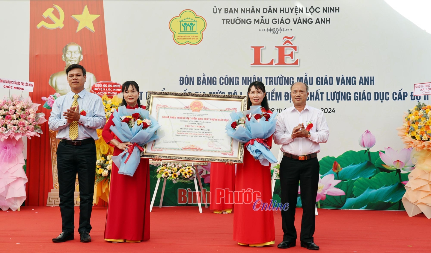 Lãnh đạo huyện Lộc Ninh trao chứng nhận đạt kiểm định chất lượng giáo dục cấp độ 2 và bằng công nhận Trường mẫu giáo Vàng Anh đạt chuẩn quốc gia mức độ 1