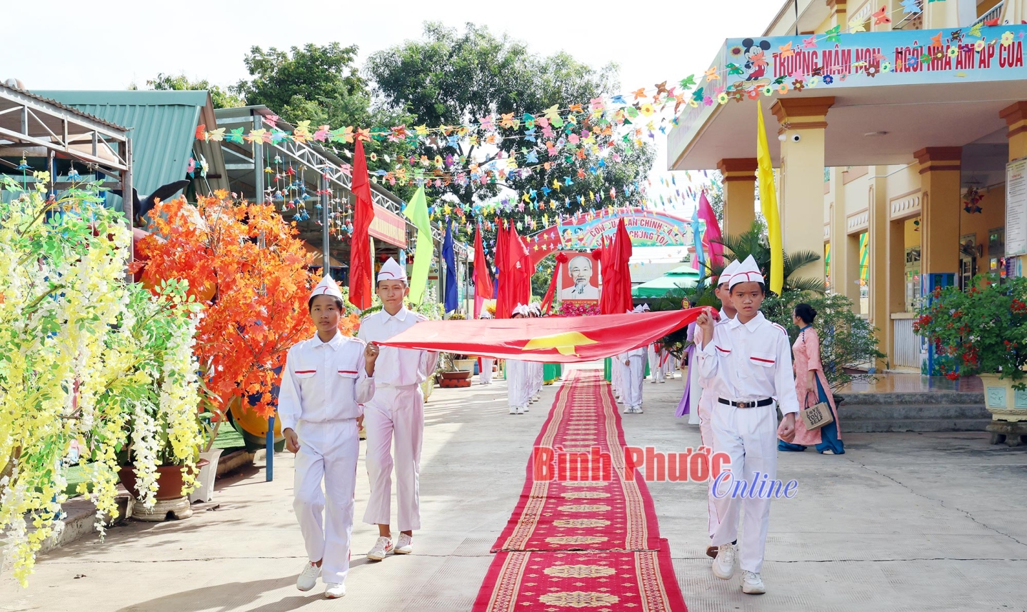 Bước đầu thành lập trường chỉ có 1 điểm chính ở ấp Hưng Thịnh, đến nay đã có 1 điểm trường tại ấp Tà Thiết. Trường có 9 lớp với gần 300 học sinh và 29 cán bộ, giáo viên, nhân viên. Hơn 10 năm qua, tập thể trường đã có nhiều nỗ lực trong việc chăm sóc, nuôi dưỡng, giáo dục trẻ. Kết quả hàng năm tỷ lệ chuyên cần của trẻ 5 tuổi đạt trên 95%, trẻ hoàn thành chương trình đạt 100%; 100% giáo viên đạt chuẩn về trình độ đào tạo, tỷ lệ giáo viên giỏi cấp trường chiếm trên 70%.